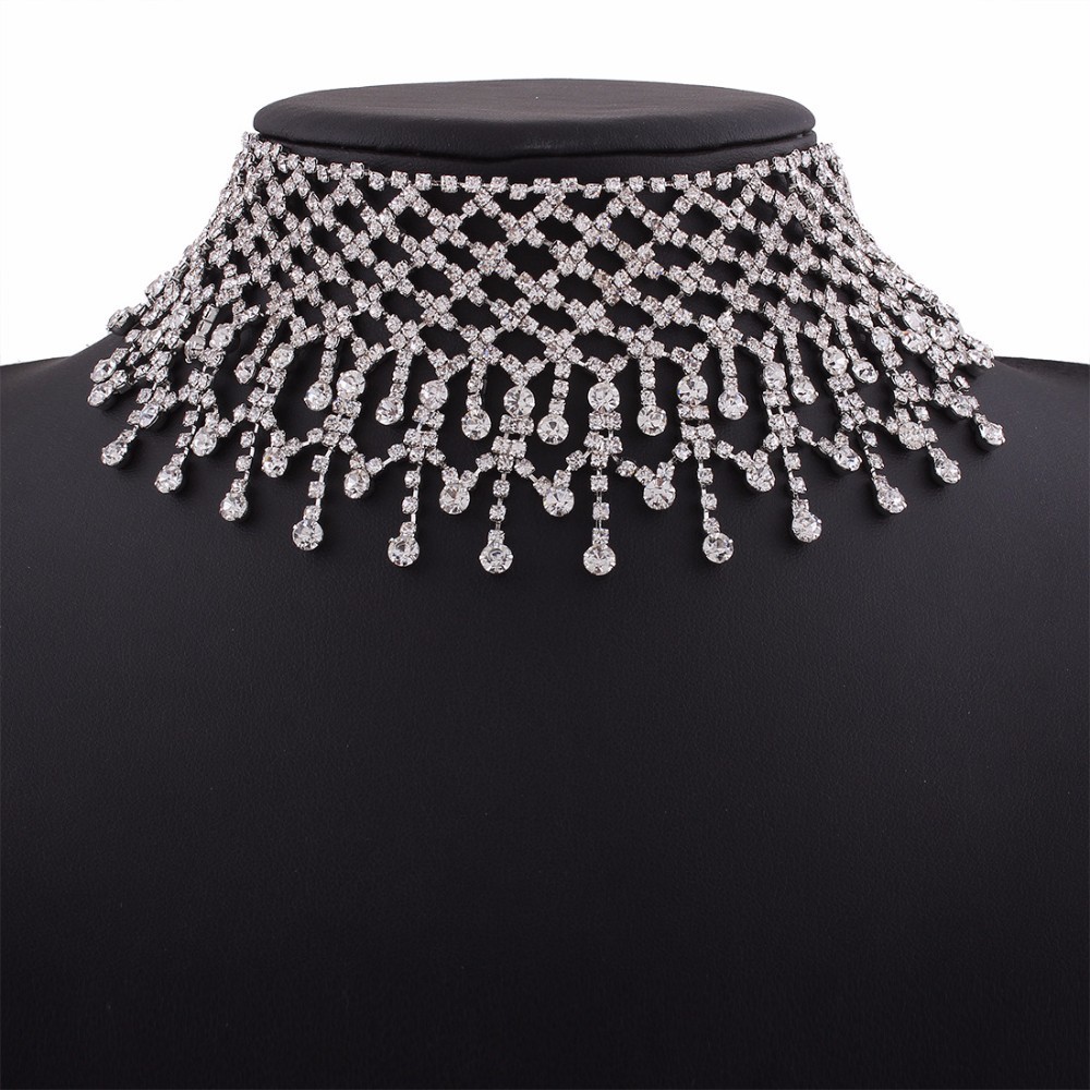 Multilayers Tassel Rhinestone Choker Statement Necklaces For Women Chockers 2018 Collar Jewelry Party Wedding Necklace Silver – Sumsfashion
