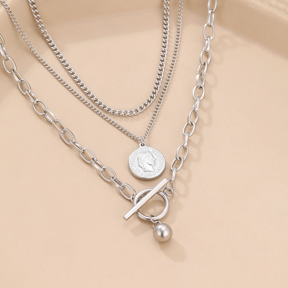 Stainless Steel Necklaces Vintage Queen's Avatar Multilayer Chain Design Sense Golden Necklace For Women Jewelry Gifts Silver Color – Sumsfashion
