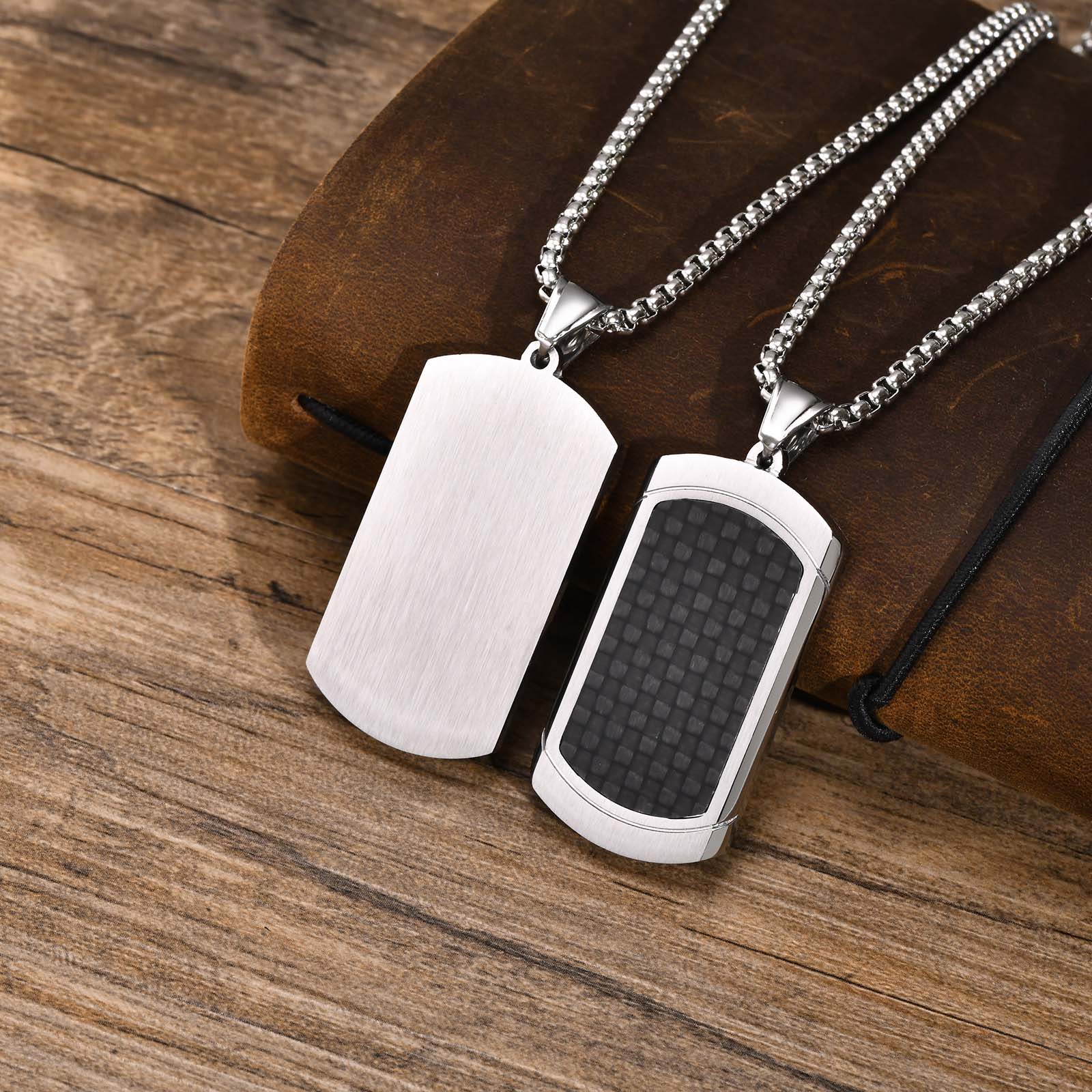 Waterproof Stainless Steel Dog Tag Necklaces for Men Boys, Black Carbon Fiber Inlay Pendant Collar,Stylish Gifts for Him Jewelry 60cm – Sumsfashion